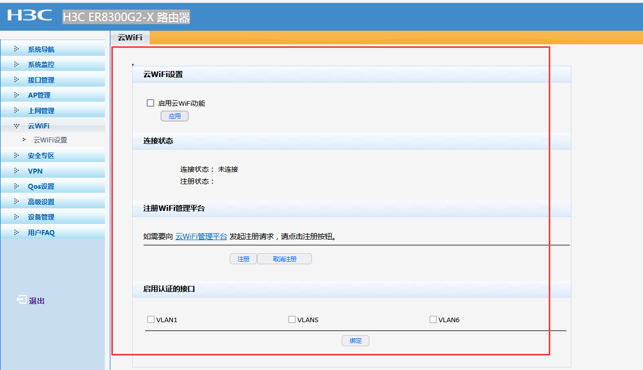 您好,进入设备云WiFi→云WiFi 设置→云WiFi界面,看下云wifi的连接状态和注册状态,是不是启用了云wifi功能?