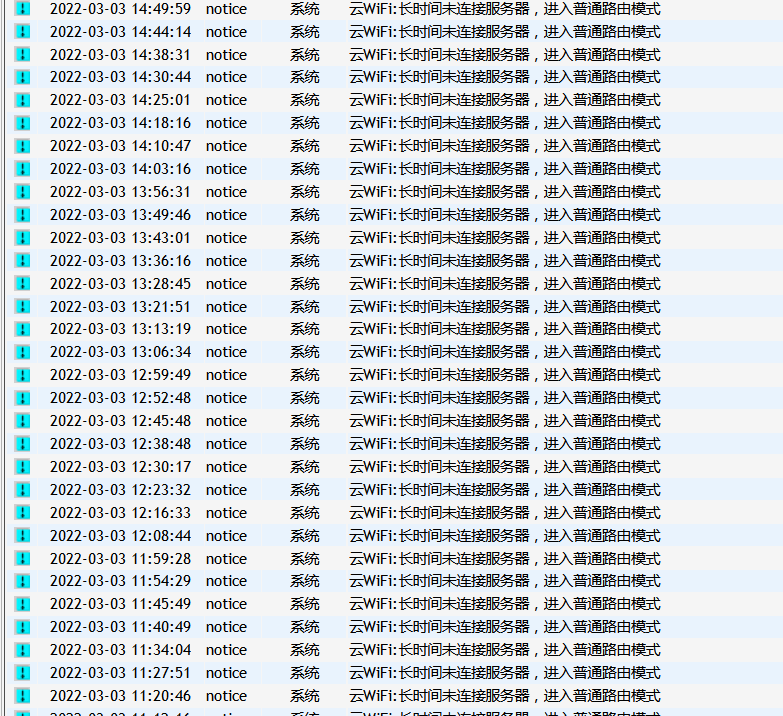 云WiFi:长时间未连接服务器,进入普通路由模式