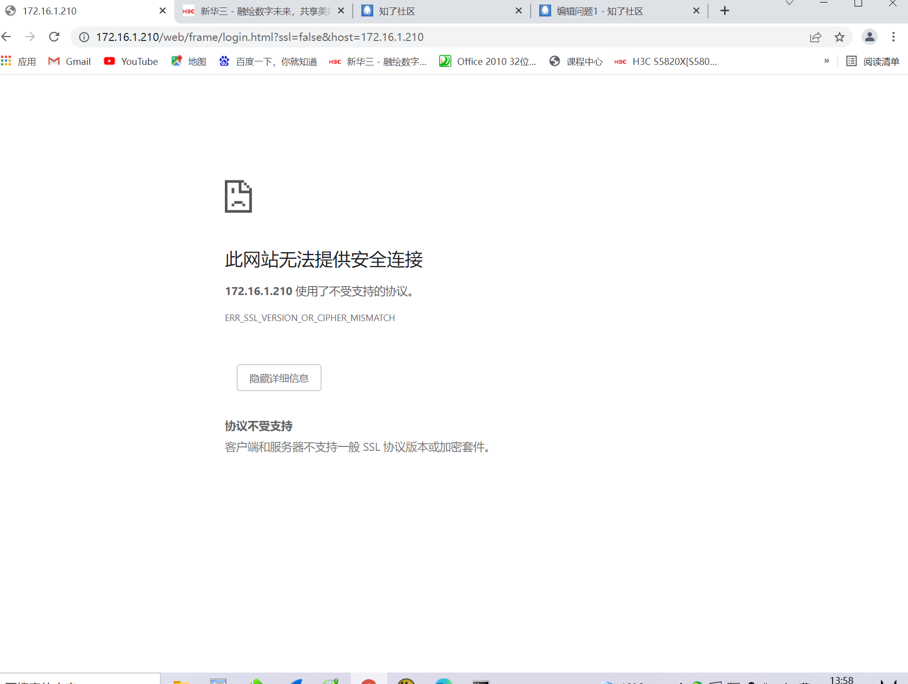 2.防火墙本身支持的协议和浏览器对不上了,这个一般是老版本修复漏洞导致支持的协议不足。升级新版本可以解决。