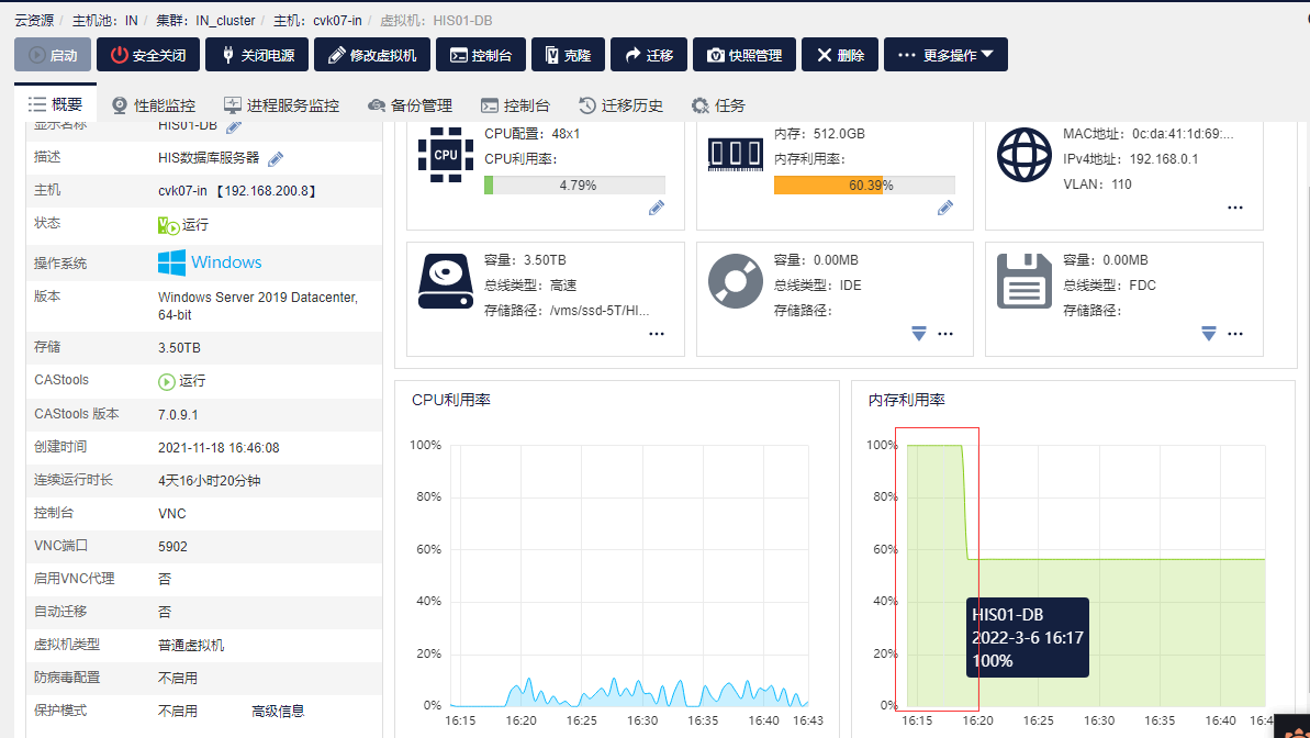 CAS虚拟化环境中虚拟机内存占满,提示网卡服务异常:提示信息如下:
