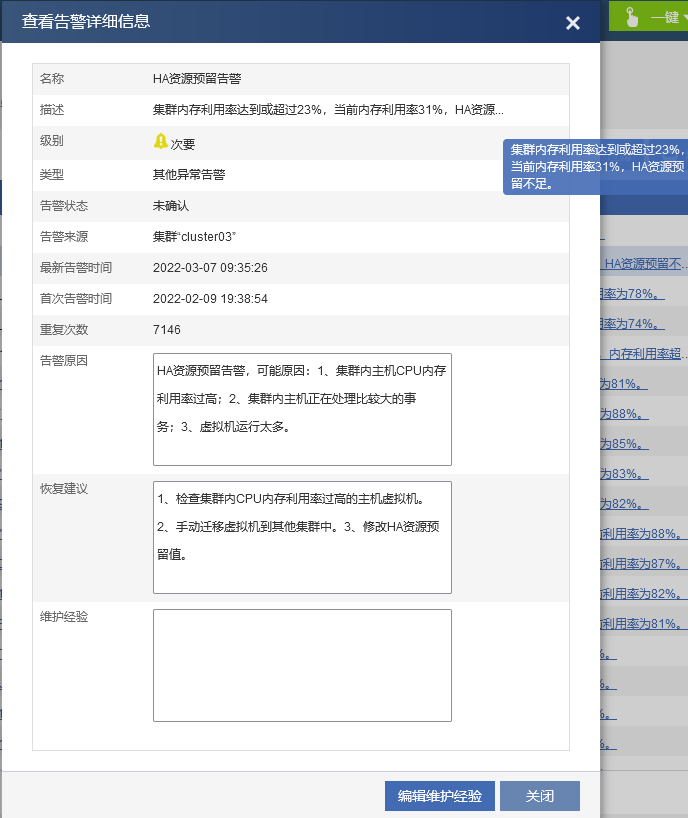 CAS5.0版本集群HA资源预留这个参数在哪修改?集群内存利用率30%就开始告警了,没找到这个参数再哪设置的