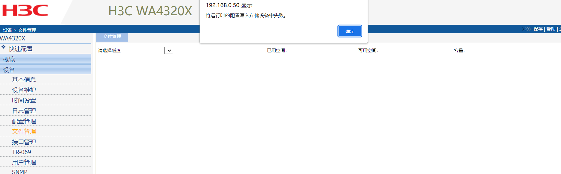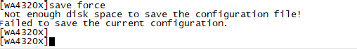 WA4320X 刷成胖版本,提示磁盘不足,但是文件管理里面没有文件,配置完成,我想保存,保存不了,通过命令行也试过无法保存,请问还有别的方法吗,不然配置完成,无法保存,重启等于没有配置了,本身里面也没有多少文件。