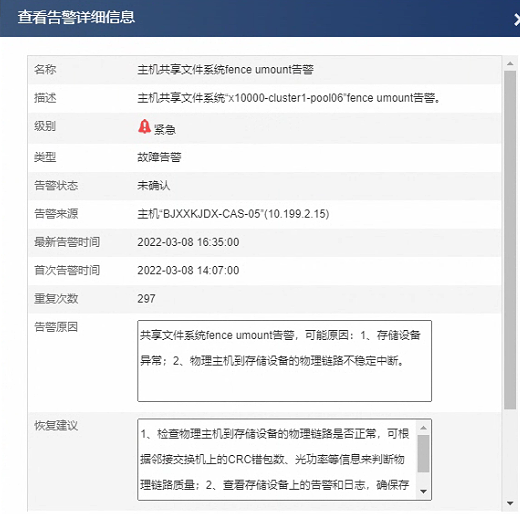 这个得后台查看日志,要么是存储的问题,要么是存储到光交的链路问题