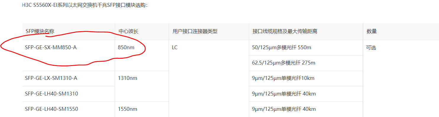 官网选型只给了个支持SFP-GE-SX-MM850-A模块的。