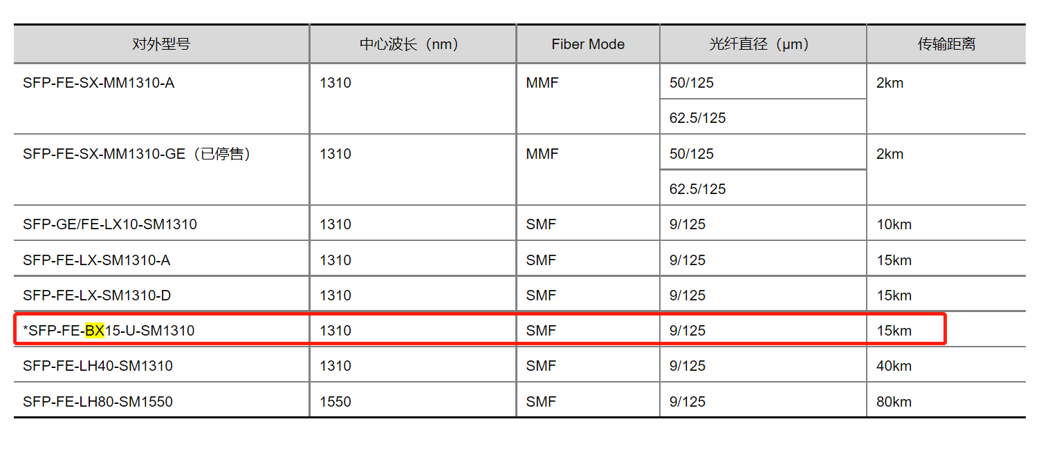 SFP-FE-BX15-U-SM1310工业温度光模块,工作壳温为-40℃~85℃。