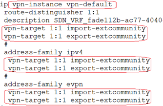 问题3:上述vsi实例的vpn-target 与 vpn-default实例的3个vpn-target 之间有啥关系,麻烦详细说明下,谢谢