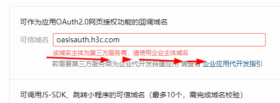 当前部分企业是开始限制自建应用不能配置配置服务商的域名,可信域名有配置到服务商应用下面的都不能配置到自建应用,可以使用自建应用代开发功能