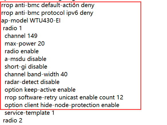 AP使用的场景是医疗,AP的无线终结者部署。开启了WIFI5的零漫游,具体配置如下,目前问题:无线开启零漫游服务后,终端程序闲置出现停顿的状态会有页面弹出,不开启零漫游无线出现丢包,导致程序,用不了。麻烦看一下零漫游配置是否正确。
