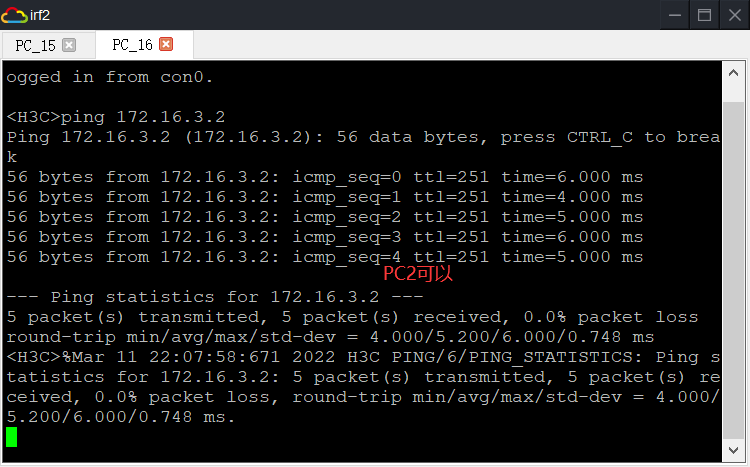 以下图是本端PCping对端PC的情况