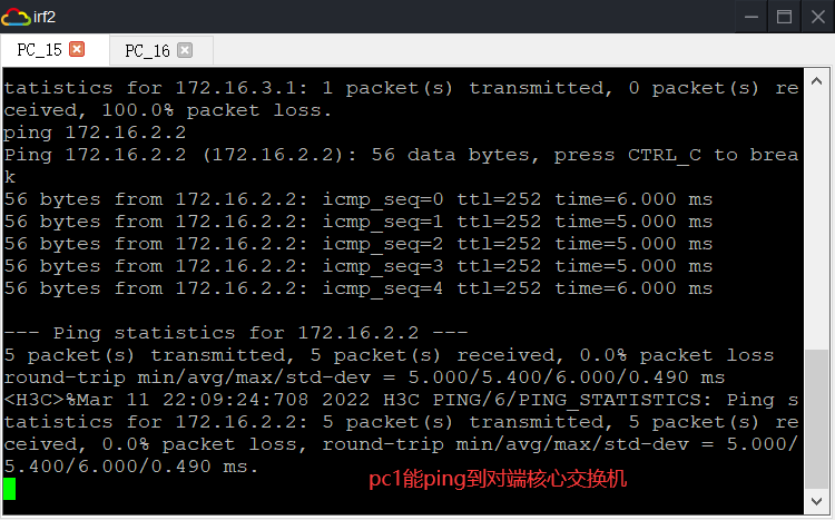 在核心交换机上ping对端PC或对端PCping核心上的任意IP都没有问题。只有PC之间会出现时而能通时而超时的情况
