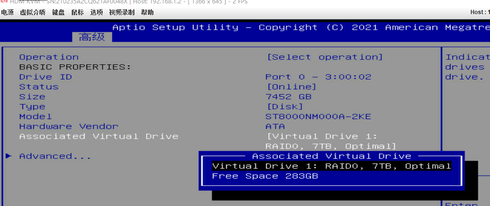 R4900 G3做单盘Raid 0,总有空闲空间未分配使用. 4个8T的盘(biso识别7452GB),作为Raid0单盘,之后,总有283G空闲。