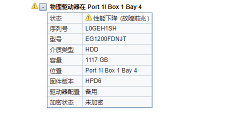 正常关机,重启DL580 G9 服务器后,ILO 显示备用驱动器 磁盘性能下降(故障前兆),是磁盘有问题了吗?