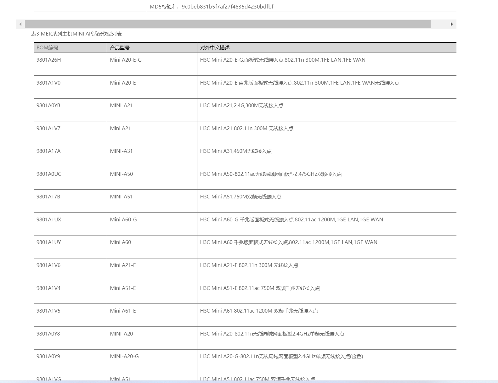 9801A26E | Mini A50-E | H3C Mini A50-E 面板式无线接入点,802.11ac 750M,1FE LAN,1FE WAN |