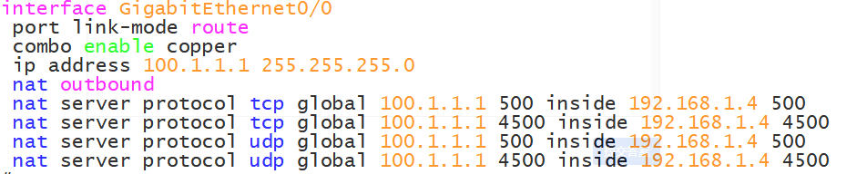 ipsec vpn我放在了内网,在R1接口上配置如下