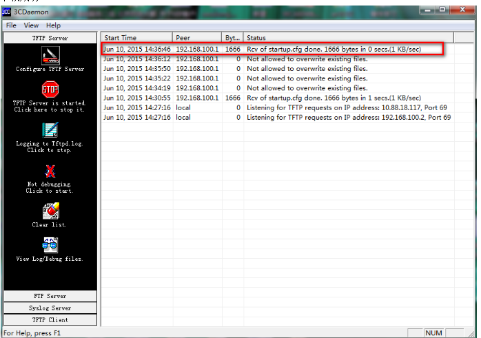 <H3C>tftp 192.168.100.2 put startup.cfg