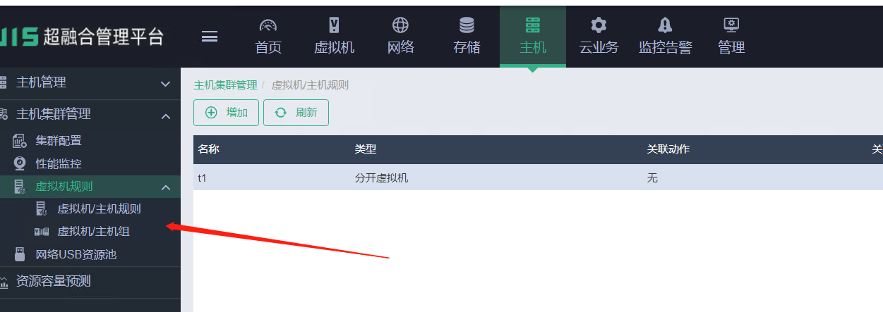 如题,没找见在什么地方配置虚机和主机的反关联规则