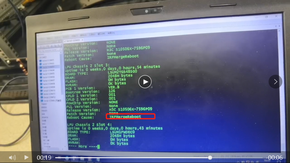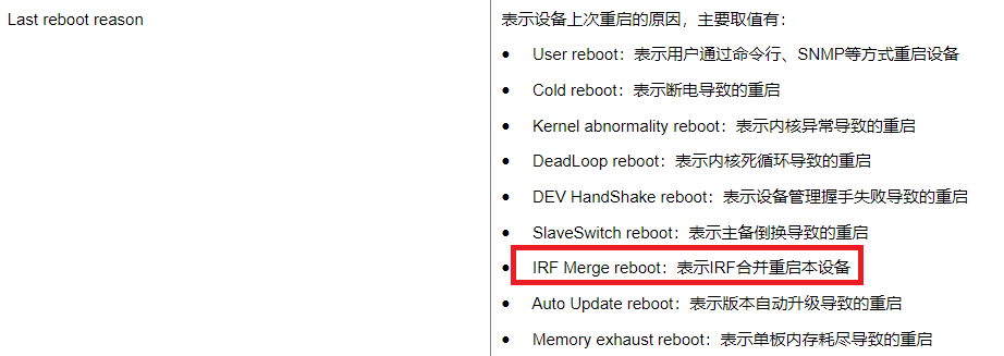 客户反馈两台S10506X堆叠的设备,其中框2设备,一天之内重启两次,重启原因是 IRFMergeReboot