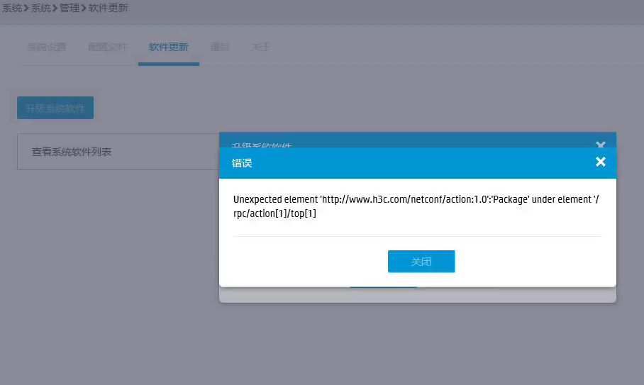 unexpected element ' http://www.h3c.com/netconf/action:1.0':'Package' under element '/rpc/action[1]/top[1]