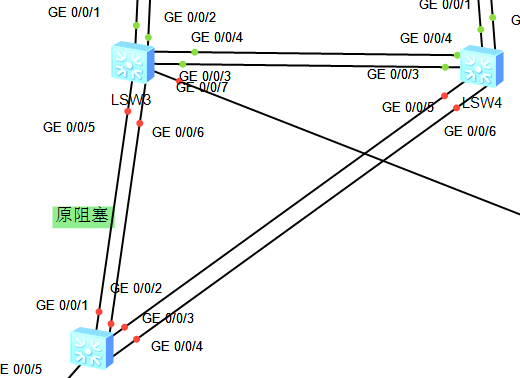 ,交换机3和4 之间什么时候需要心跳线,什么时候不需要,下图中加了心跳后的结果就是出现vrrp双主,SW3下边的5、、6接口的聚合口被stp阻塞了