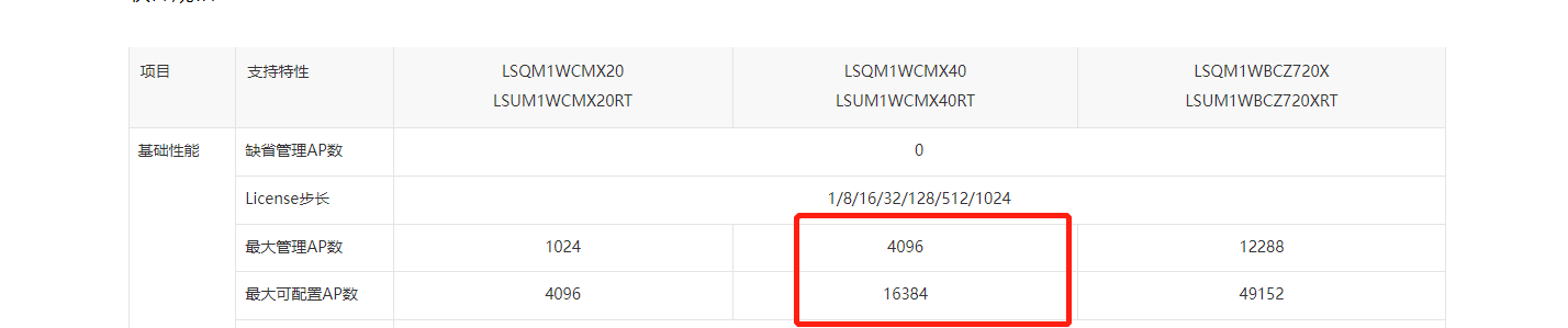 最大可配置AP数 | 4096 | 16384 | 49152 | |