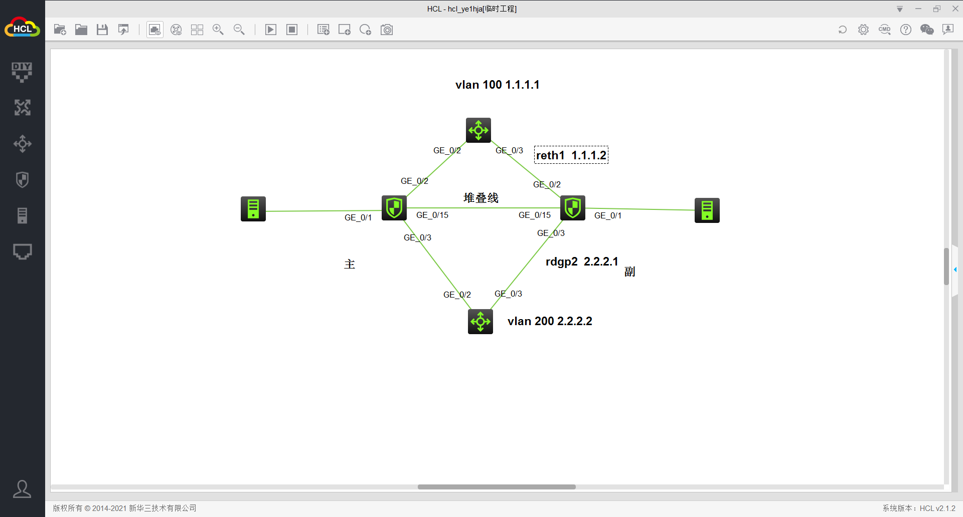 防火墙堆叠:防火墙的1/0/2和2/0/2为一个冗余接口 接口下的IP地址为 1.1.1.2/24