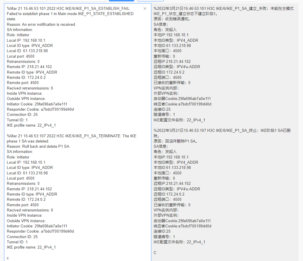 ike1阶段建立失败,检查下连通性