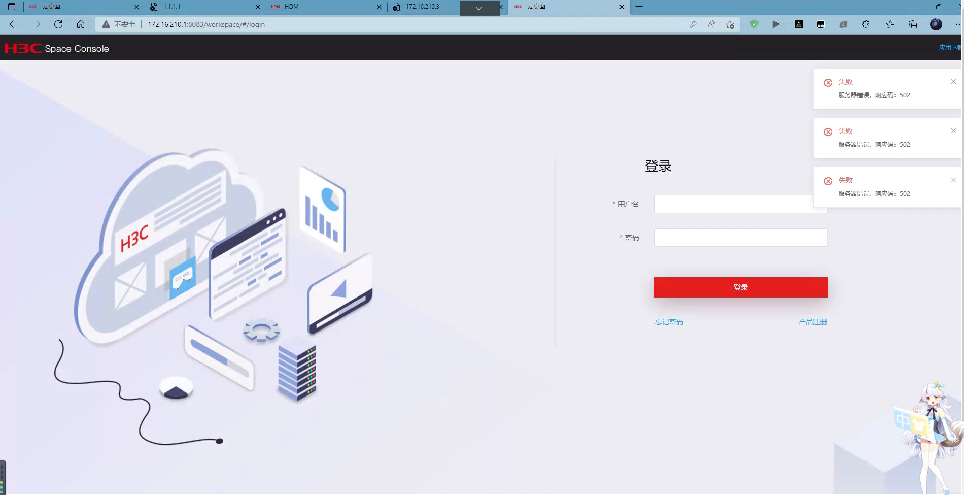 Workspace云桌面-web页面弹出服务器错误响应码502