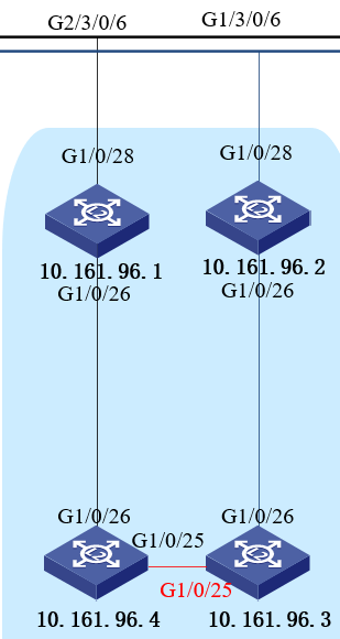 四台均启用RSTP,.1与.2上联一台汇聚设备,互联口均放通vlan all, .4与.3 互联,但.3的g1/0/25口将stp 的cost值改为40960