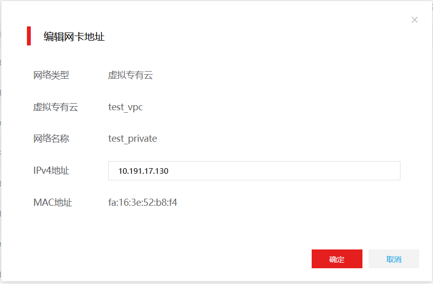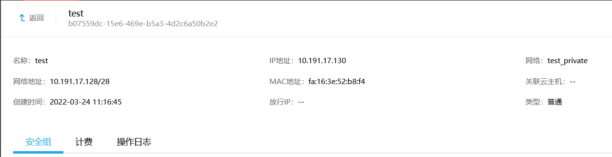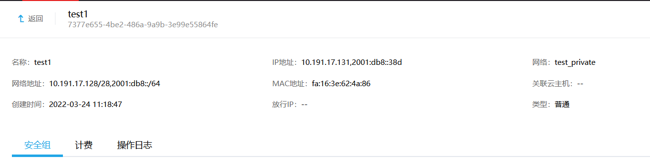 CloudOS使用test VPC(未启用IPv6)创建网卡test,如下图所示