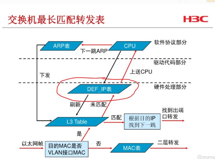 粗略分析的话,可能L3 Table指的是FIB(dis fib可以看到),DEF_IP表我从没听说过,判断不出来。