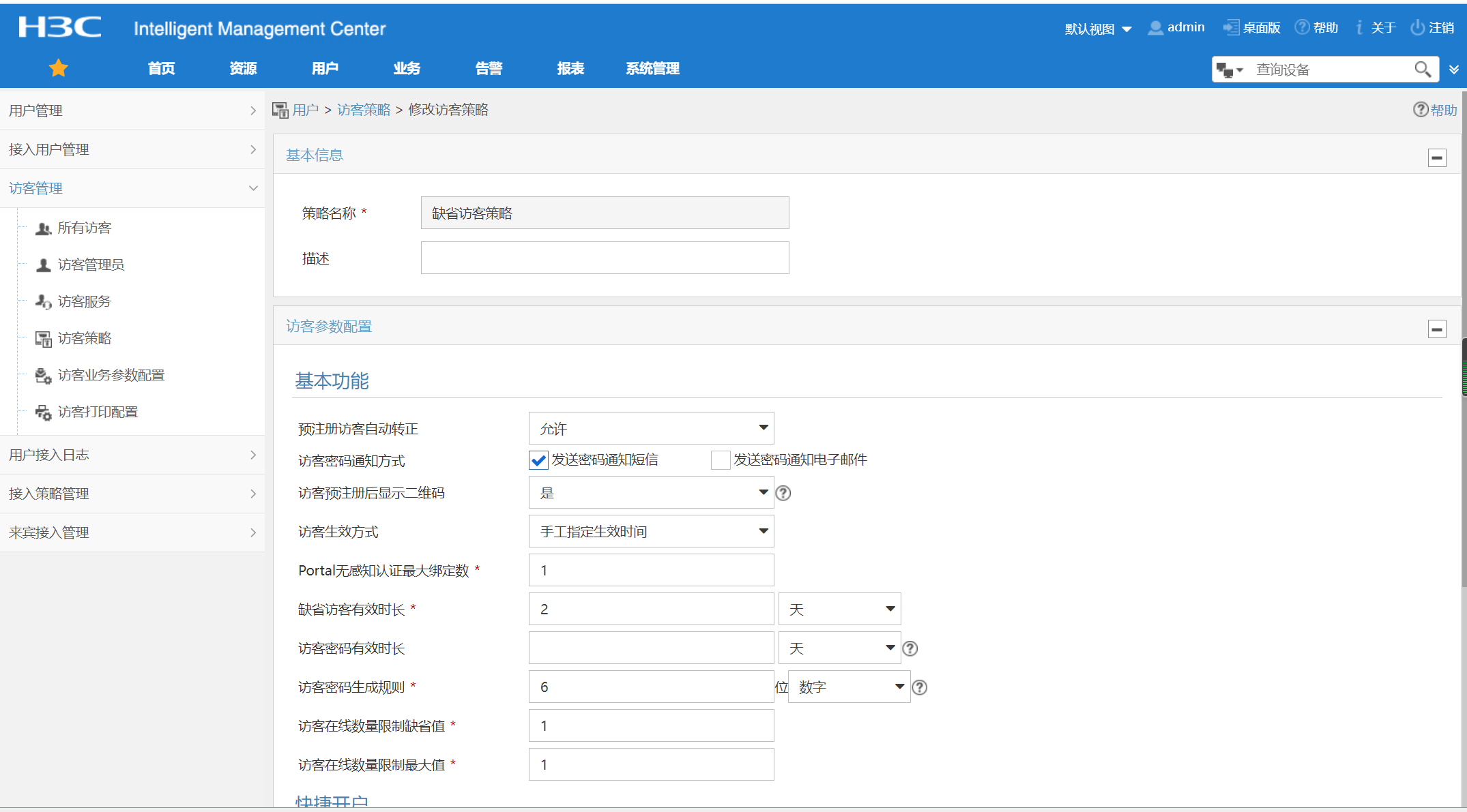 3、确认访客管理中有默认访客管理员