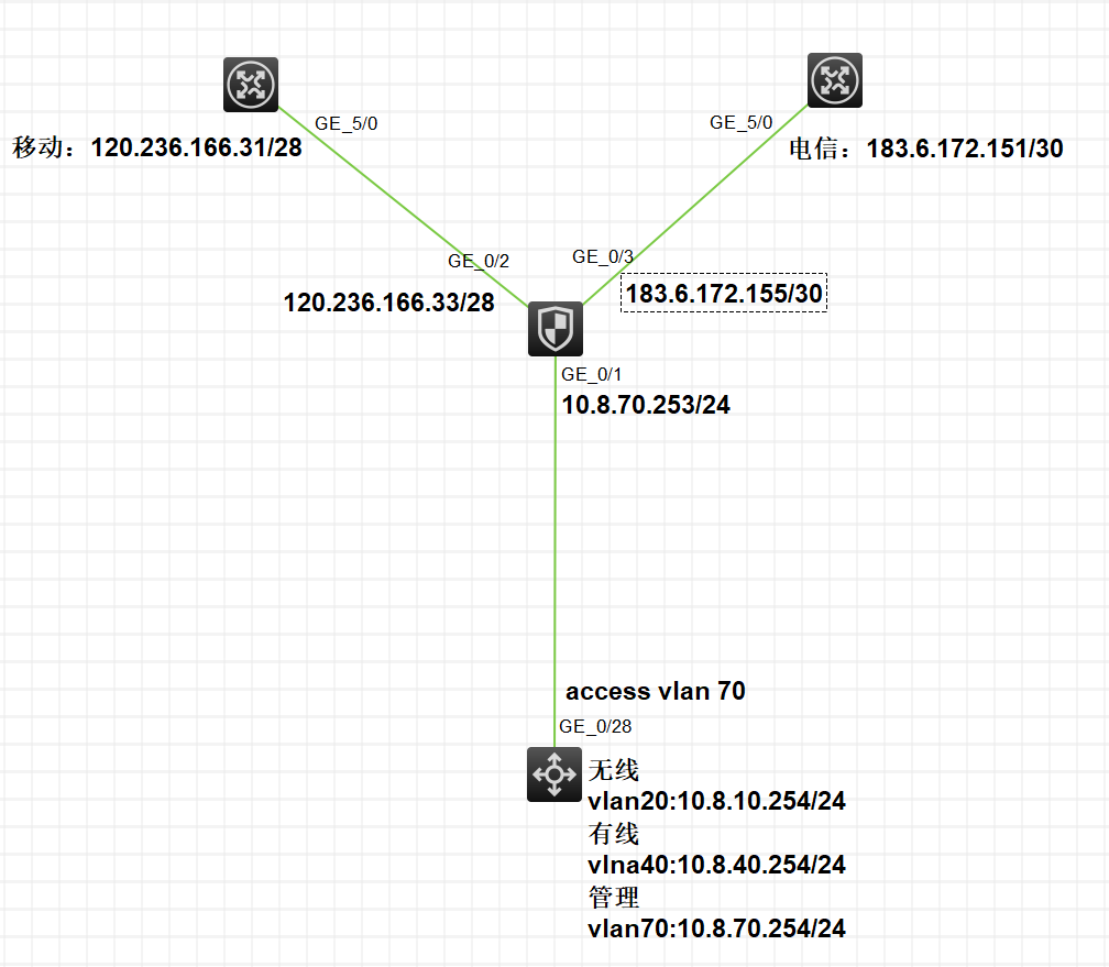 1.有线用电信(核心可以ping通183.6.172.155/30)