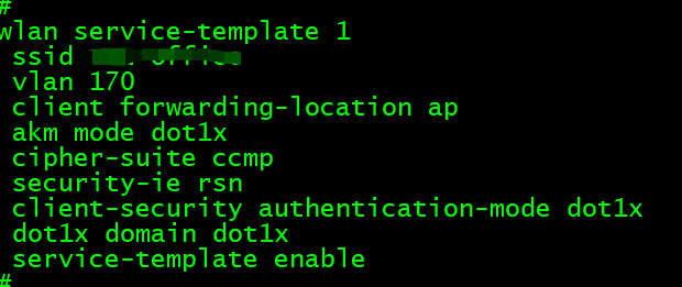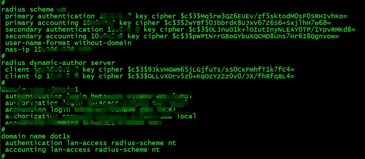 dot1x认证模式为eap中继,截图为无线模板及radius和domain域的配置