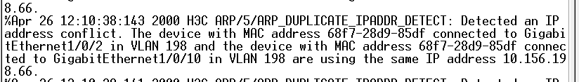 网络环境:2号口接的其他交换机,10号口直接接一台PC,现在是交换机不停的报2号口和10号口IP地址冲突,冲突设备的mac地址是同一个,请问这是什么原因