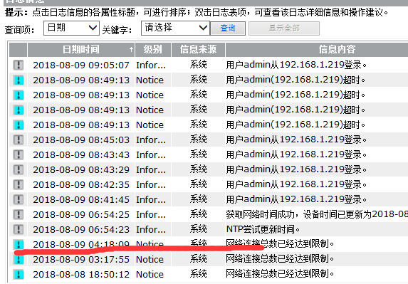 连接数上限可以进行调整,但是如果某一个IP地址大量占用连接数就有问题了,需要排查一下这个终端是不是中毒了,或者是不是在进行BT下载什么的。