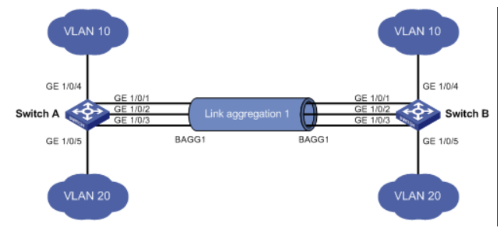[H3C-GigabitEthernet1/0/1] port link-aggregation group 1