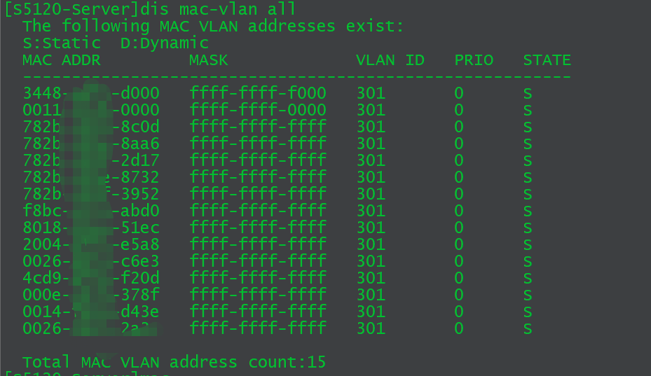 [S5120-Server]mac-vlan mac-address F8BC-1251-A790 vlan 301