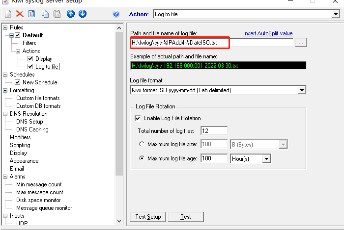 是两台5560做了irf ;把日志发送到KIWI SYSLOG 做的日志主机,设置的是按IP地址分类存放