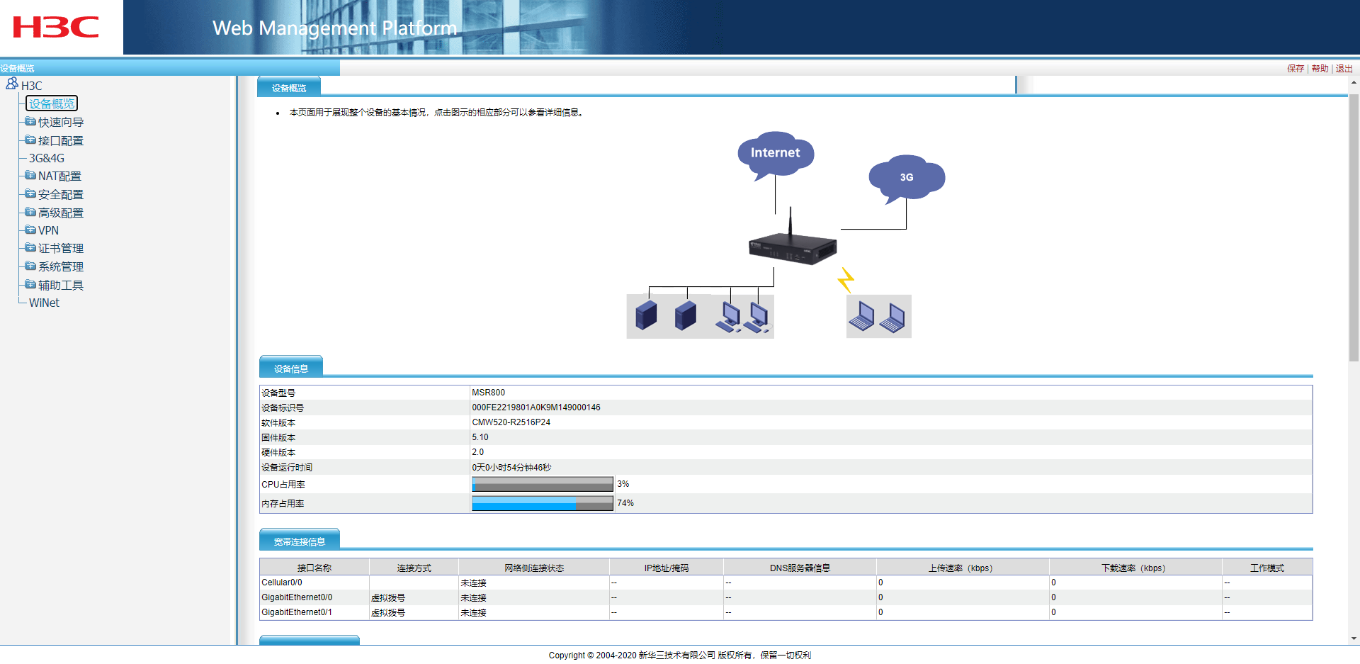 当前状态:SYS灯绿色闪烁,频率约1S一次,VPN和WLAN灯绿色闪烁,频率约2S一次。