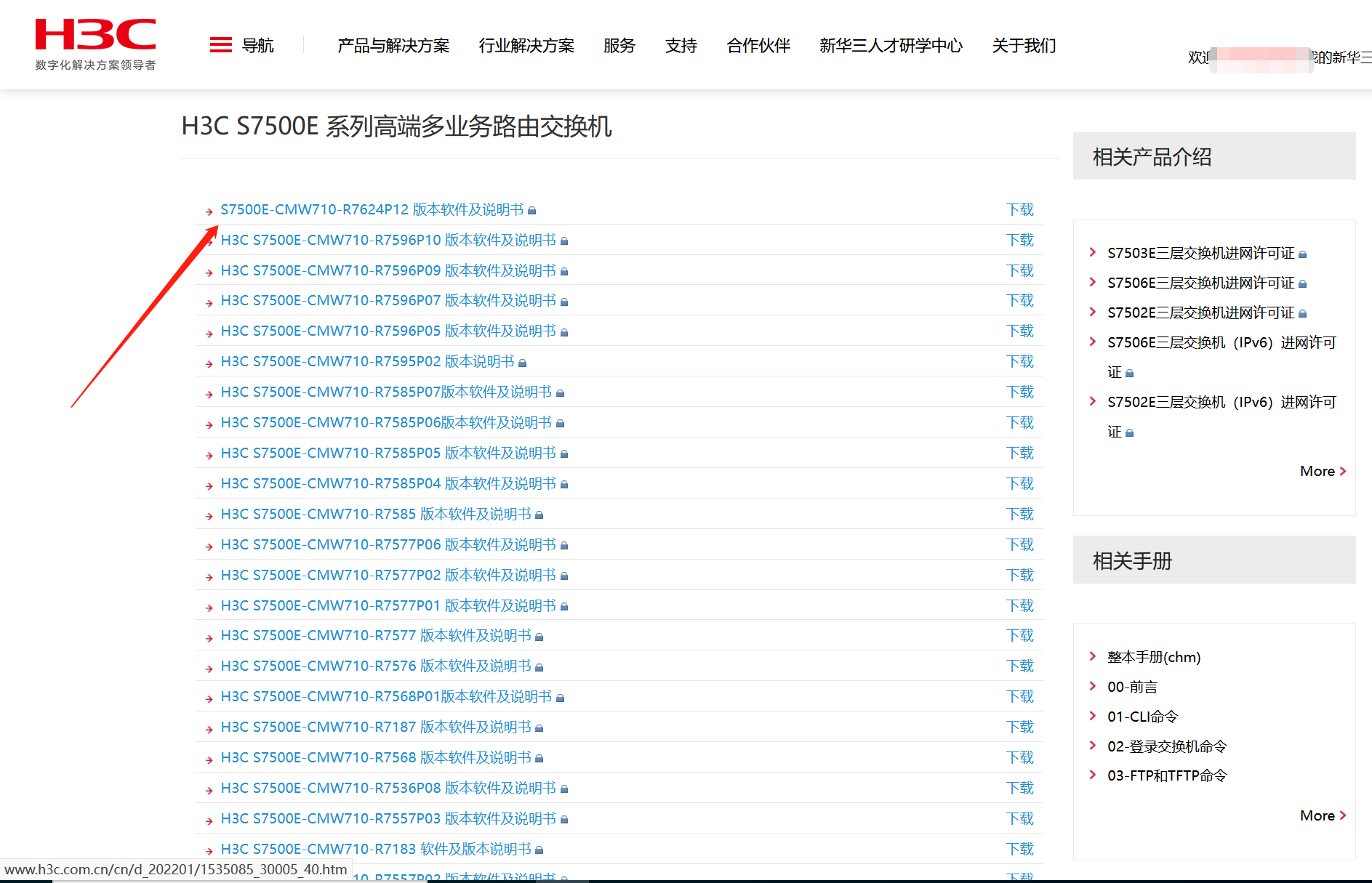 版本链接:https://www.h3c.com/cn/Service/Document_Software/Software_Download/Switches/Catalog/H3C_S7500E/H3C_S7500E/?CHID=53919&v=612