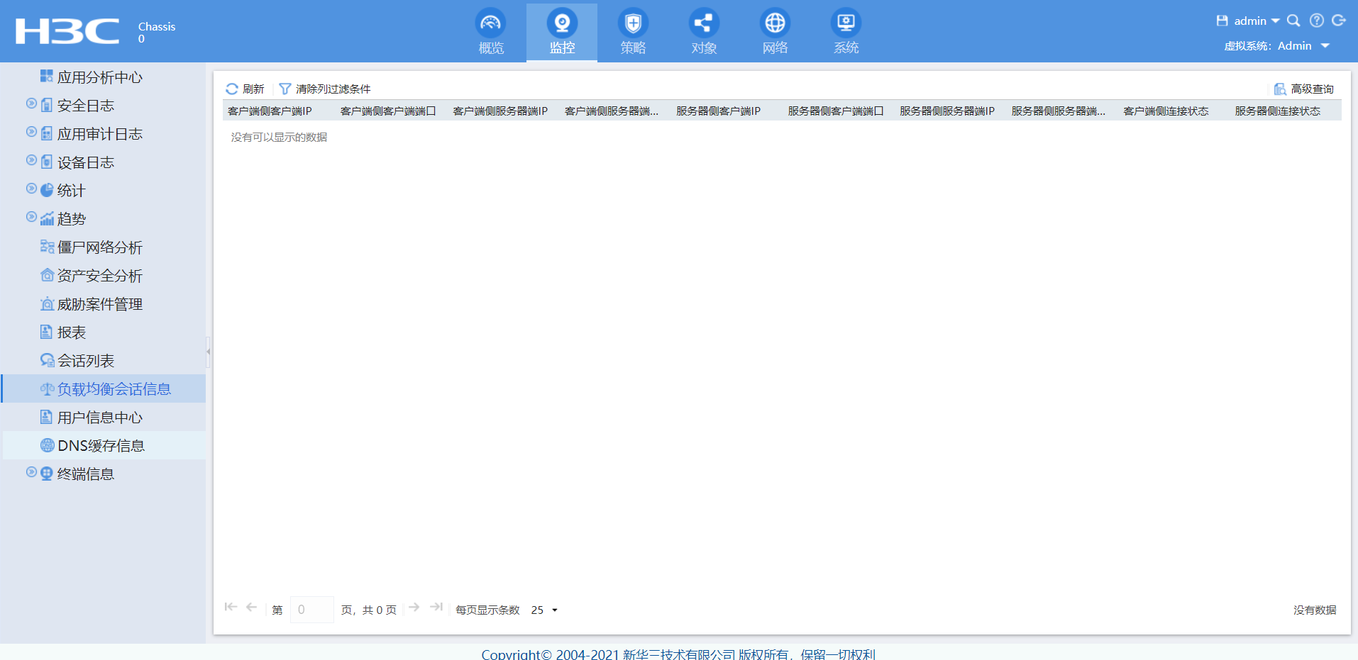 这个显示的是服务器负载均衡(就是要授权才能用的那个)的会话信息,与出链路负载均衡、dns透明代理、入链路负载均衡等功能无关。