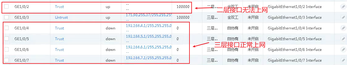 防火墙是出口网关部署,端口设置为access vlan 10,放通了所有的策略,然后接电脑无法上网。但是接三层接口可以上网。