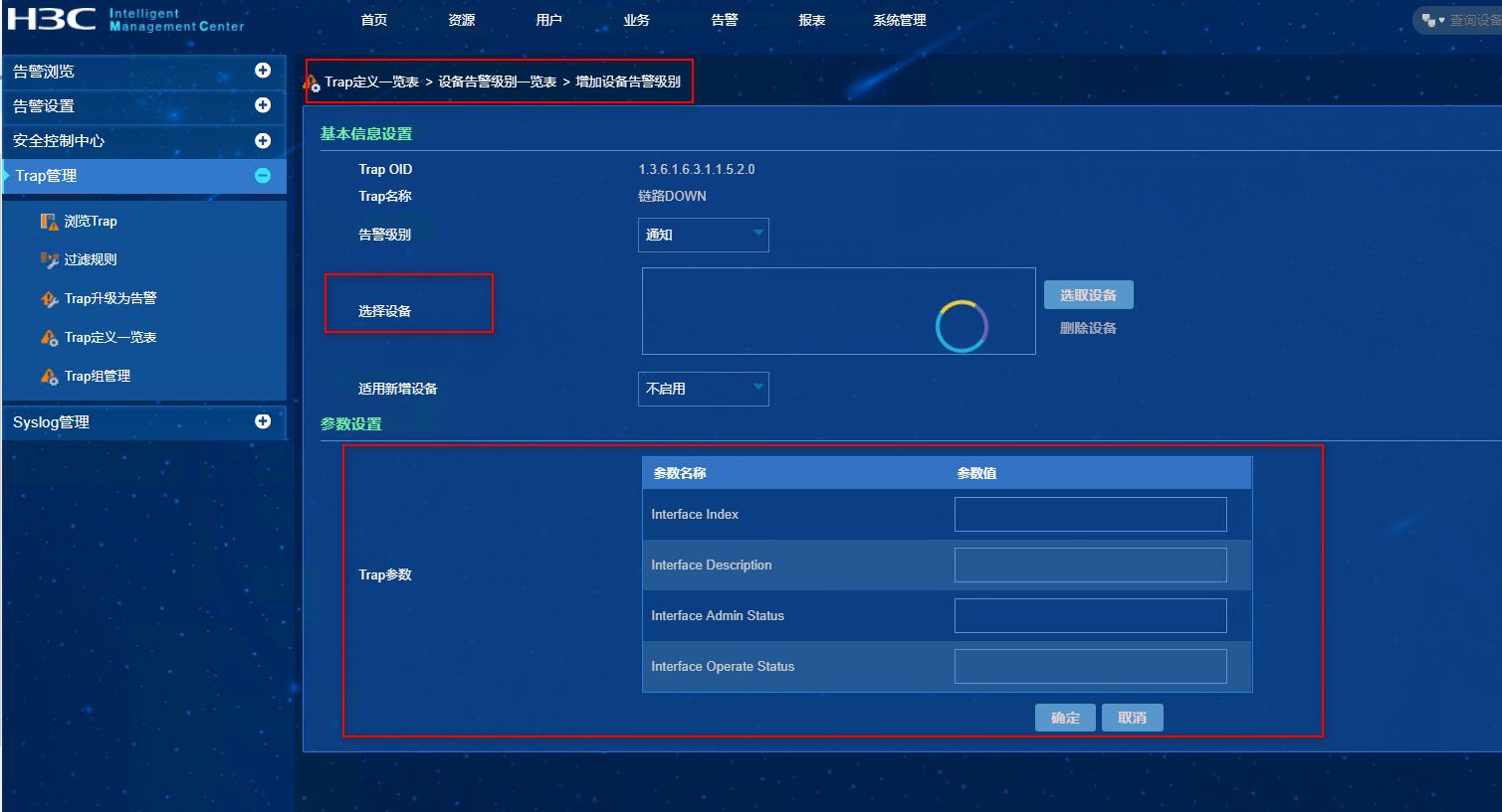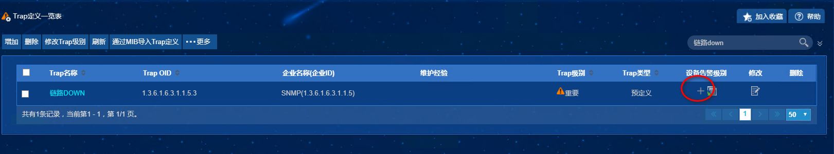 Trap定义一览表里找到对应的trap,点击红框里的加号可以配置