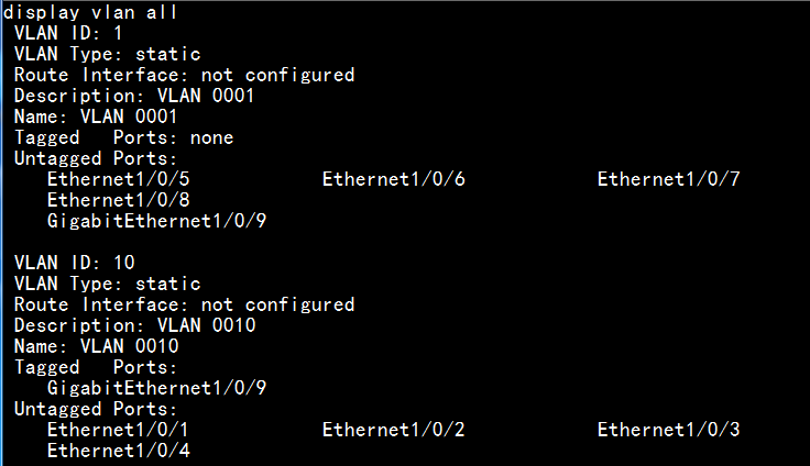 求解:用什么命令,才可以将第九口,作为vlan1与vlan10的上联口.现在只通了vlan1..vlan10不通网.谢谢.