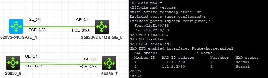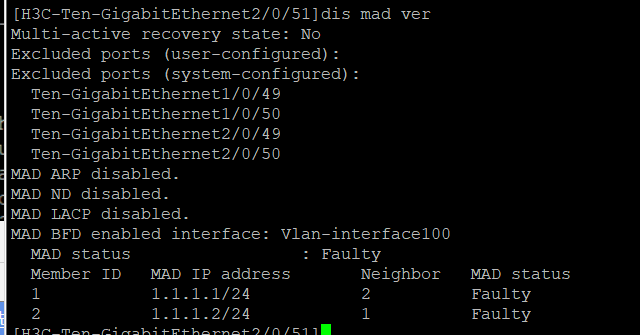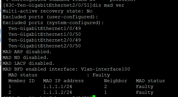 堆叠成功后,mad bfd状态一直是失败状态,是我配置有问题嘛?