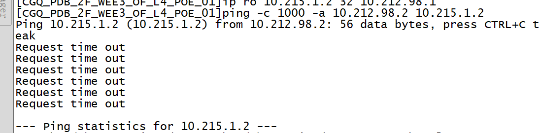 用接入交换机模拟PC,访问10.215.1.2失败,证明ACL调用没有问题