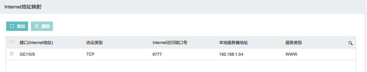 这个后台上只有设置internet访问端口号,没有办法设置映射到的内网端口