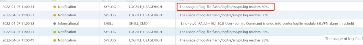 敲了undo info-center logfile module SSLVPN alarm-threshold还是会有提示