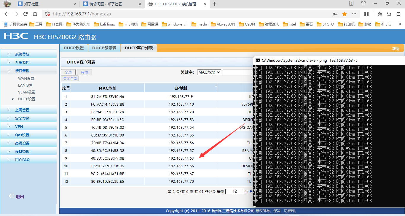 内网是192.168.77.0 路由器作为dhcp服务器,在服务器上能看到客户机的IP和MAC,客户机也能ping通dhcp服务器,为什么服务器无法ping通客户机,客户机没有启用防