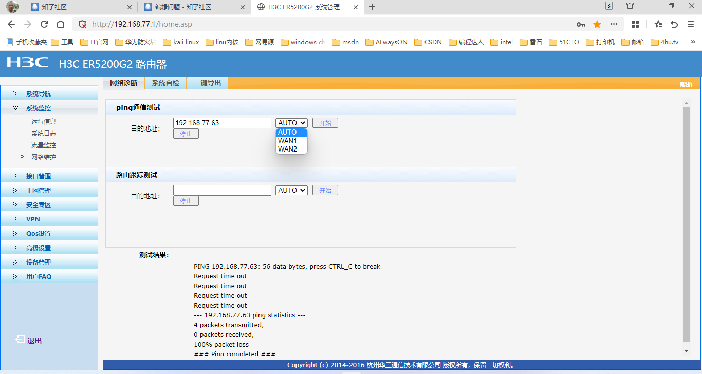 就对应这个IP了,而且不只是ping不通这个,dhcp分配下的客户机路由器都无法ping通,但是使用电脑ping就能ping通,使用路由器就是ping不通
